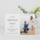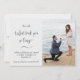Verkünden Sie Ihr Heiratsangebot und Ihre Verlobung mit dieser lustigen und modernen Verlobung-Ankündigung Fotokarte mit den Worten: "Sie sagte: "Was hat dich so lange gedauert?" in trendiger, handgeschriebener Skriptkalligraphie und weiteren Informationen. Eine tolle Möglichkeit, Ihren Vorschlag in der Ehe und Ihrer Verlobung bekannt zu geben!