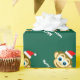 Funny Santa ape Christmas wrapping paper for kids. Cute monkey with Santa hat gift wrap personalized with child's name. Cartoon animal gift wrap design for little boys and girl. Make one for son, grandson, daughter, new baby, grandchild etc. Holiday illustration for children. Fun Santa Clause animal. Custom color background ie green.