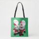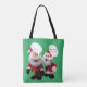 Diese nützliche Tasche ist garantiert, um während der Ferienzeit ein Lächeln zu wecken. Es verfügt über zwei niedliche Cartoon Santa's, einer frage dem anderen ein Rätsel, mit der Antwort auf der Rückseite mit einem grünen Hintergrund. Ideal für Ihre Weihnachtsbäder oder als Geschenktasche.
