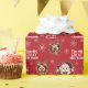 Niedliche und lustige Weihnachtsverpackung für Mädchen mit Weihnachtsmann, Rudolph und einem Rentiermädchen, das auf dem roten Hintergrund mit dem weißen Namen und zwei anderen Texten durchbricht, sie leicht personalisieren oder einen Teil davon leere verlasse. Kate Eden Art