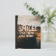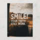Hübsche und sarkastische Geburtstagskarte mit Text "Lächeln! Ihre Zähne funktionieren noch" - die perfekte Postkarte für ältere Menschen.
