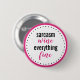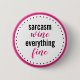 Funny Button für Mädchen "Sarcasm, Wine, Everything Fine". Schwarz und heiß rosa. Trendy Typografie.