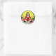 Add a little humor into their holiday season with this cute Christmas sticker with graphics of a funny retro pop art woman sitting in a pile of Christmas gifts, wrapping paper, scissors and bows.