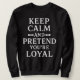 Sarcastic dog quote “Keep Calm and Pretend You’re Loyal” — a witty design for pet lovers who enjoy clever, humorous canine sayings.