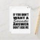 Wenn Sie lustige sarkastische Zitate oder großartige humorvolle Entwürfe mögen, dann ist dieser originale Slogan " Wenn Sie keine sarkastische Antwort gewollt haben, frag mir nicht " für Sie. Es ist ein großartiges Geschenk für Ihre Familie, Freunde oder Sie selbst! Dieses Design ist ideal für alle, die Sarkasmus und Spaß Lieben. Wenn Ihnen dieses lustige Zitat gefällt, Karo mehr ähnliche Kunstwerke im Omitay Store heraus. Bleibe sicher und danke für die Unterstützung eines lokalen Künstlers.