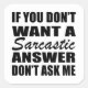 Wenn Sie lustige sarkastische Zitate oder großartige humorvolle Entwürfe mögen, dann ist dieser originale Slogan " Wenn Sie keine sarkastische Antwort gewollt haben, frag mir nicht " für Sie. Es ist ein großartiges Geschenk für Ihre Familie, Freunde oder Sie selbst! Dieses Design ist ideal für alle, die Sarkasmus und Spaß Lieben. Wenn Ihnen dieses lustige Zitat gefällt, Karo mehr ähnliche Kunstwerke im Omitay Store heraus. Bleibe sicher und danke für die Unterstützung eines lokalen Künstlers.
