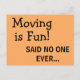 Funny Sassy Sarcasm Orange Moving Ankündigung Postkarte