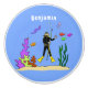 Dieses niedliche Design zeichnet unseren Cartoon-Taucher aus, umgeben von einem merkwürdigen Meeresleben. Hübscher Wasserspass!