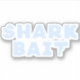 Blass blauer Aufkleber mit den Worten "Shark Bait". Und große Bissmarken, die aus den Buchstaben genommen wurden. Ideal für Surfer und Hai-Liebhaber.