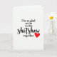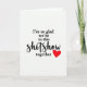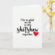 This Valentine’s Day card features a white background with a single red heart placed in the bottom right corner. Centered on the front is the message, “I’m so glad we’re in this shitshow together.” Most of the sentence appears in black serif lettering that is clear and steady, making it easy to read at a glance. The word “shitshow” is written in a hand-drawn script style, adding a personal and slightly humorous touch. With no extra artwork or distractions, the focus stays on the message and the small heart. It’s a thoughtful choice for a partner or close friend who understands life’s chaos and appreciates honesty, support, and sticking together through it all.