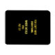 Gelber Text auf schwarzem Hintergrund hinterfragt humorvoll die Praktikabilität, alles zu haben. Es fordert den Leser auf, die Grenzen des Raumes und des Besitzes zu berücksichtigen.