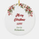 An der Vorderseite dieses Holiday-Ornaments befindet sich das Bild eines sibirischen Husky-Hundes, der mit einem gebrochenen Baum vor ihm sitzt. Er ist in eine Reihe glühender Weihnachtslichter eingewickelt. Im roten Text steht "Lieber SANTA Definition NAUGHTY". Auf der Rückseite steht rot und grün "MERRY CHRISTMAS", und es gibt zusätzliche Textfelder, die Sie nach Ihren Wünschen anpassen können.