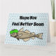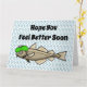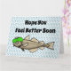 Hier ist eine alberne Karte, die man jemandem geben kann, der krank ist oder sich erholt. Es zeigt einen großen Cod vorne mit einer heißen Wasserflasche auf dem Kopf. Das ist eine großartige Karte für Leute, die gerne Kanonen spielen oder auch gerne angeln. Oder von jemandem, der gerne fischen will, um einem kranken Freund zu geben. Designed by Sheila Cicchi, Brownielocks.com, Alle Rechte vorbehalten.