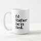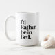 Genießen Sie einen skurrilen Slogan "Ich möchte lieber im Bett sein" auf dieser zeitgenössischen Tasse, die auf beiden Seiten gedruckt ist. Diese Tasse ist in einer Kapazität von 15 Unzen mit einer Option für eine Größe von 11 Unzen erhältlich und bietet eine komfortable Mikrowelle und einen Geschirrspüler.