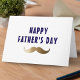 Funny Simple Mustache Happy Father's Day Card. Einfache Karte mit goldenem Schnurrbart und dem glücklichen Vatertag. Fügen Sie Ihre Nachricht hinzu. Eine süße und lustige Karte für Papa zum Vatertag.