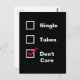 Funny Single Taken Don't Care Checkliste Verabrede Postkarte