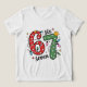 Funny Six Seven 67 Meme Christmas Lights Kids T-Shirt features a the text "67" in modern red and green script typography accented with Christmas lights captures the fun and joyful spirit of the holidays with a festive theme and happy holiday mood. Perfect for Christmas gifts, Christmas party apparel and holiday celebrations, birthdays and more. Created by Evco Studio www.zazzle.com/store/evcostudio