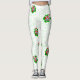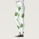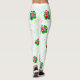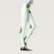 Die Leggings sind weiß mit leuchtend grünen Polka-Punkten, die lustige Skelette enthalten, die Ziergegenstände in einer Weihnachtsmannmütze in einem grünen und roten Spritzer tragen.