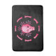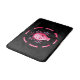 Ein Funny Skull Bade mit einer digitalen Abbildung eines rosa Schädels, dessen Wimpern mit einem Happy Wurm aus der Augenhöhle verwirrt erscheinen, Blume dahinter und Knochen um sich herum. Ideal für Halloween und Gotik mit einem Sinn für Spaß.