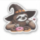 Funny Sloth in Witch Hat geniessen Donuts - Niedli Aufkleber