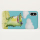 Sie werden die Liebe zeigen, dass Ihr Telefon bedeckt in diesem einzigartigen Cartoon-Stil mit einem skurrilen Lächeln Gator in Aquarellfarben von grün und gelb. Ein hellblauer Himmel mit puffigen weißen Wolken bildet den Hintergrund.