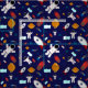 Das Thema des Universums mit Planeten, Meteoren und Kosmonauten.