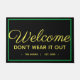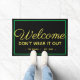 Mit dieser personalisierten Begrüßungsmatte heißen Sie Ihre Gäste herzlich willkommen. Die Farben Gelb, Schwarz und Grün tragen dazu bei, ein subtiles St. Patricks Day Thema zu schaffen, das durch den Frühling gezeigt werden kann. Design hat einen Blick auf eine einfache Begrüßungsmatte, bis genau gelesen. Die Nachricht hält die Gäste davon ab, ihren Besuch zu überbrücken. Wörter lesen "Willkommensgruß verschleiert nicht" mit Familienname und Datum darunter. Das Design ist gelb kalligrafisch und modern auf schwarzem Hintergrund. Eine grüne Grenze fasst die Buchstaben auf der Matte zusammen. Design von © Ms_Jade. Weitere lustige Designs in meinem Zazzle-Store unter www.zazzle.com/Ms_Jade* kaufen