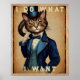 Funny Steampunk Cat In Blue Jacket Poster