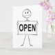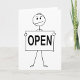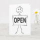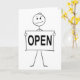 Senden Sie ein Lächeln mit diesen lustigen Grußkarten mit einem Cartoon-Strichmännchen mit einem "OPEN"-Zeichen. Dieses Design ist perfekt für die Begrüßung von Nachrichten, neuen Geschäftsankündigungen oder fröhlichen Noten an Freunde. Es verleiht eine spielerische und freundliche Touch. Ideal für Unternehmer, Kreative oder alle, die minimale und humorvolle Kunst mit einer Botschaft der Positivität Lieben.