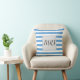 Ein cooles, hellblau-weiß gestreiftes Muster und ein graues Rechteck mit dem Wort mrs. Klicken Sie auf Personalisieren, um das Monogramm nach Ihren Wünschen zu ändern.