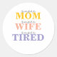 Funny super mom super wife super tired runder aufkleber