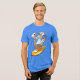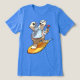 A cool polar bear surfer on a t-shirt. A cheerful top featuring a cartoon of a chilled out polar bear in Hawaiian shirt and shorts, enjoying a cold drink and a cooling hand fan while riding a bright yellow surf board. Treat your laid back friend to a humorous and relaxed design for the summer.