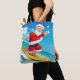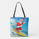 Diese Tasche zeigt eine lebendige Darstellung des Weihnachtsmannes, strahlt reinen Geist und fängt eine Welle auf einem Surfbrett. Der Weihnachtsmann hat ein fröhliches Grinsen, sein weißer Bart fließt im Wind. Er ist in seinem klassischen roten Anzug gekleidet, der sich gut gegen Himmel und Wellen stellt. Viel Platz für das Tragen von Wesentlichen, ob Strandgeschirr, Lebensmittel oder Alltagsgegenstände.