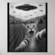 Funny Surprised Ed Cat Selfie With Alien Ufo Cat U Poster