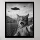 Funny Surprised Ed Cat Selfie With Alien Ufo Cat U Poster