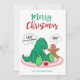 Teilen Sie sich einen Spaß mit dieser Weihnachtskarte mit einem grünen und roten Gruß "Frohe Weihnachten", einem niedlichen Tyrannosaurus Rex Dinosaurier mit winzigen Armen, der auf einem Teppich mit einem Geschenk sitzt, und einem Lebkuchenmann mit abgebranntem Ohr. In der Titelschrift von Trex steht: "Rawr, ich kann meine Gegenwart nicht erreichen!", und die Beschriftung für den Lebkuchenmann sagt "Was?". Originelle Kunstwerke von Tommy Moreno und KL Stock.