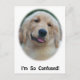 Head Shot Fotograph of beautiful golden retriever with whimsical facial expression. This image is used to create funny T-Shirts and tops for men, women, children, toddlers and infants. The caption is "I'm So Confused", which is what the golden retriever seems to be thinking. This image used for gift items - mousepads, stickers, mugs, buttons, aprons, ball caps, keychains, postcards, note cards and postage stamps.