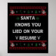 Funny Tacky Santa Knows You Lied On Your Resume Ugly Sweater