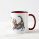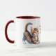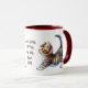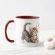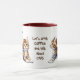 Diese niedliche Kaffee-Tasse hat zwei Bilder von bezaubernden gestreiften Kätzchen aus Tabby. Der braune Text zwischen den Bildern sagt "Lass uns COFFEE trinken und über CATS reden". Perfekt für jeden Katzenliebhaber!