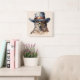 Funny Taube mit Cowboy-Hut, Aquarell Quadratische Wanduhr
