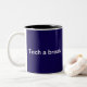 Entspannen Sie sich und genießen Sie Ihre Kaffeepause mit dieser stilvollen Tasse. Die Tasse zeigt in dunkelblauem Mitternachtsblau den humorvollen Wortstamm "Tech a break" in hellweißer Schrift. Personalisieren Sie die andere Seite mit einem Monogramm für die fertige Touch. In einem beruhigenden minimalistischen Stil ist die amüsante Tasse ein ideales Geschenk für IT-Profis, Informatikstudenten und Technikfreunde.