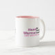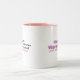 Niedlicher Teetasse mit rosa Zitat, der lautet "Handwärmer. Es werden keine Batterien benötigt. Fügen Sie einfach heißen Tee hinzu!