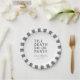 Set Sie den Ton für Ihren Hochzeitsempfang, Ihre Verlobungsfeier, die Dusche eines Paares oder Ihren Hochzeitstag mit diesem lustigen Papierteller. Dieses Design enthält einen fett gedruckten Text "TILL DEATH DO US PARTY". Die Textvorlage erlaubt es Ihnen, dieses Design mit den Namen der Braut und des Bräutigams und dem Hochzeitstag zu personalisieren. Sie können den Text auch in andere Formulierungen umwandeln, wenn Sie es wünschen. Erhältlich in verschiedenen Farben - hier in grauem Text auf weißem Hintergrund mit einem Streifen um den äußeren Rand des Designs dargestellt. Hinweis: Diese Teller sind in 2 Größen erhältlich; hier in der Größe von 7", die für das Servieren von Kuchen oder Kleinteilen gut geeignet ist. Auch in einer Größe von 9" erhältlich, die gut für Essen und Seiten ist.
