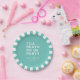 Set Sie den Ton für Ihren Hochzeitsempfang, Ihre Verlobungsfeier, die Dusche eines Paares oder Ihren Hochzeitstag mit diesem lustigen Papierteller. Dieses Design enthält einen fett gedruckten Text "TILL DEATH DO US PARTY". Die Textvorlage erlaubt es Ihnen, dieses Design mit den Namen der Braut und des Bräutigams und dem Hochzeitstag zu personalisieren. Sie können den Text auch in andere Formulierungen umwandeln, wenn Sie es wünschen. Erhältlich in verschiedenen Farbvarianten - hier in weißem Text auf einem aquamarinen Hintergrund mit Streifen rund um den äußeren Rand des Designs dargestellt. Hinweis: Diese Teller sind in 2 Größen erhältlich; hier in der Größe von 7", die für das Servieren von Kuchen oder Kleinteilen gut geeignet ist. Auch in einer Größe von 9" erhältlich, die gut für Essen und Seiten ist.