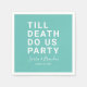 Set Sie den Ton für Ihren Hochzeitsempfang, Ihre Verlobungsfeier, die Dusche eines Paares oder Ihren Hochzeitstag mit dieser komischen Papierserviette. Dieses Design enthält einen fett gedruckten Text "TILL DEATH DO US PARTY". Die Textvorlage erlaubt es Ihnen, dieses Design mit den Namen der Braut und des Bräutigams und dem Hochzeitstag zu personalisieren. Sie können den Text auch in andere Formulierungen umwandeln, wenn Sie es wünschen. Erhältlich in verschiedenen Farben - in weißem Text mit aquamarinem Hintergrund.