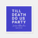 Set Sie den Ton für Ihren Hochzeitsempfang, Ihre Verlobungsfeier, die Dusche eines Paares oder Ihren Hochzeitstag mit dieser komischen Papierserviette. Dieses Design enthält einen fett gedruckten Text "TILL DEATH DO US PARTY". Die Textvorlage erlaubt es Ihnen, dieses Design mit den Namen der Braut und des Bräutigams und dem Hochzeitstag zu personalisieren. Sie können den Text auch in andere Formulierungen umwandeln, wenn Sie es wünschen. Erhältlich in verschiedenen Farben - in weißem Text mit brillantem kobaltblauen Hintergrund gezeigt.