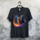 "Experience the ultimate cinematic feline adventure with this hilarious 'Titanic Cats in Space' T-shirt! This vibrant graphic features two adventurous tabby cats—one orange and one grey—recreating the iconic 'King of the World' pose from the classic romance film. Instead of a ship's bow, they are perched on the glowing edge of a swirling, colorful galaxy filled with deep purples, cosmic blues, and starlit nebulae. Perfect for movie buffs, cat lovers, and anyone who appreciates a good internet meme, this surreal cosmic design is a guaranteed conversation starter. Whether you're a fan of sci-fi humor or just love quirky pet art, this comfortable black tee is an ideal gift for birthdays, holidays, or everyday wear. Celebrate your love for movies and meows with this unique space-themed parody that proves even in deep space, 'every cat is a masterpiece'."
