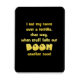 Gelber Text vermittelt eine humorvolle tako-bezogene Nachricht auf einem soliden schwarzen Hintergrund. Die Betonung auf "BOOM" unterstreicht die clevere Idee, beim Verschütten von Füllungen ein zusätzliches Taco zu erzeugen.