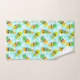 Sonnige, tropische Ananas mit Sonnenbrille und festlich dekoriert mit Weihnachtsbeleuchtung, Ziergegenständen und Bonbons. Dieses Muster hat einen pastellblauen Hintergrund mit hawaiianischen Hibiskus-Blume. Diese Badetücher machen Spaß, wenn Sie Ihrem Badezimmer einen Weihnachtsakzent am Strand hinzufügen!