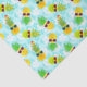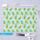 Sonnige, tropische Ananas mit Sonnenbrille und festlich dekoriert mit Weihnachtsbeleuchtung, Ziergegenständen und Bonbons. Dieses Muster hat einen pastellblauen Hintergrund mit hawaiianischen Hibiskus-Blume. Lustige Geschenkpackungen und Party zum Feiern einer Strandweihnacht!
